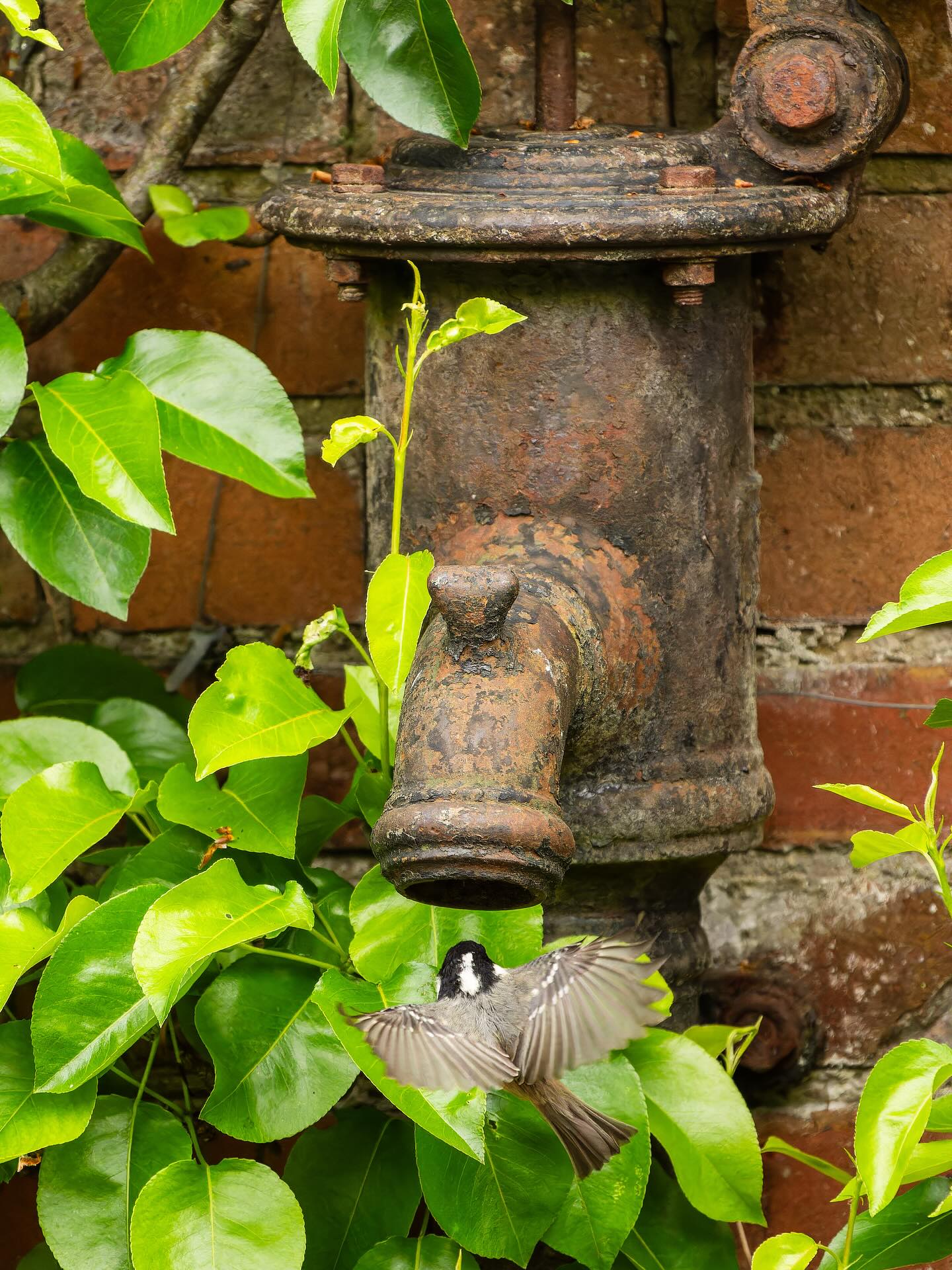 Highlight was a cuckoo that streaked through the garden at 07:00 amĀ and this coal tit nesting in a disused water pump.